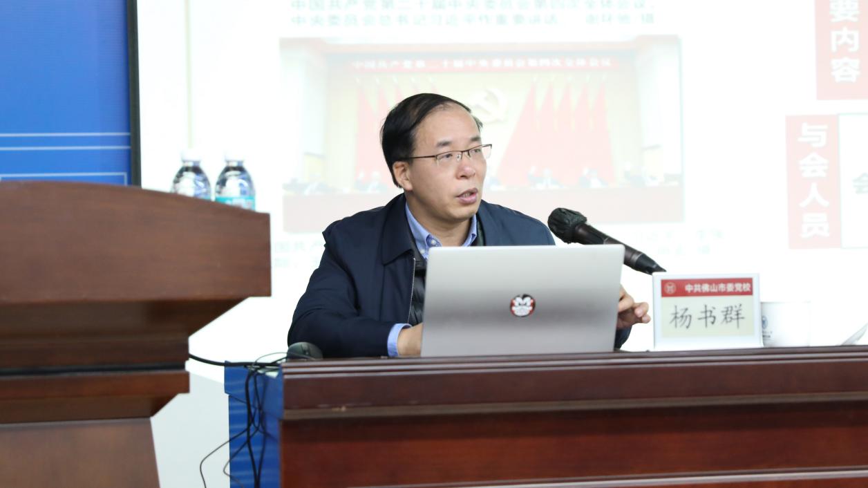 为深入学习贯彻党的二十届四中全会精神,切实把师生思想和行动统一到全会精神上来,11月21日上午,ku真人 举行“学习贯彻党的二十届四中全会精神暨党务干部履职能力提升培训班”第三讲。本次培训特邀中共佛山市委党校杨书群教授作题为“深学笃行党的二十届四中全会精神 接续推进中国式现代化”专题辅导。ku真人 院长何新波与师生党员共同参加了学习。