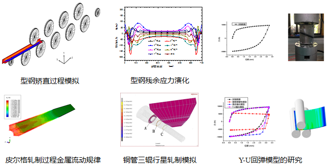 通过有限元数值模拟研究H型钢矫直过程、双金属复合板对称叠轧过程、管材行星轧制过程、皮尔格轧制过程;分析结构成形过程的形态及残余应力演化。