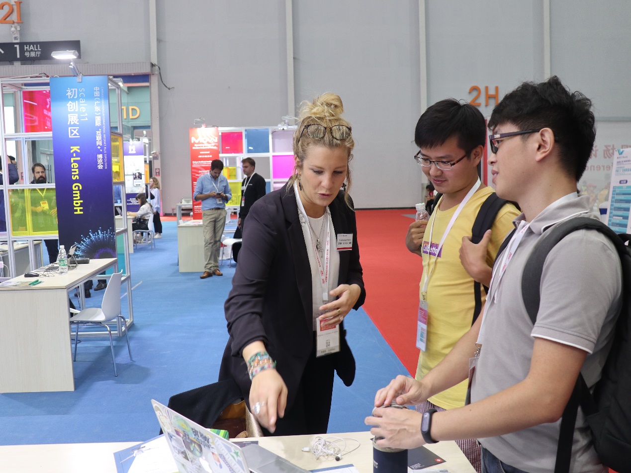图为2号展馆德国abas展位,同学们在收集企业相关资料