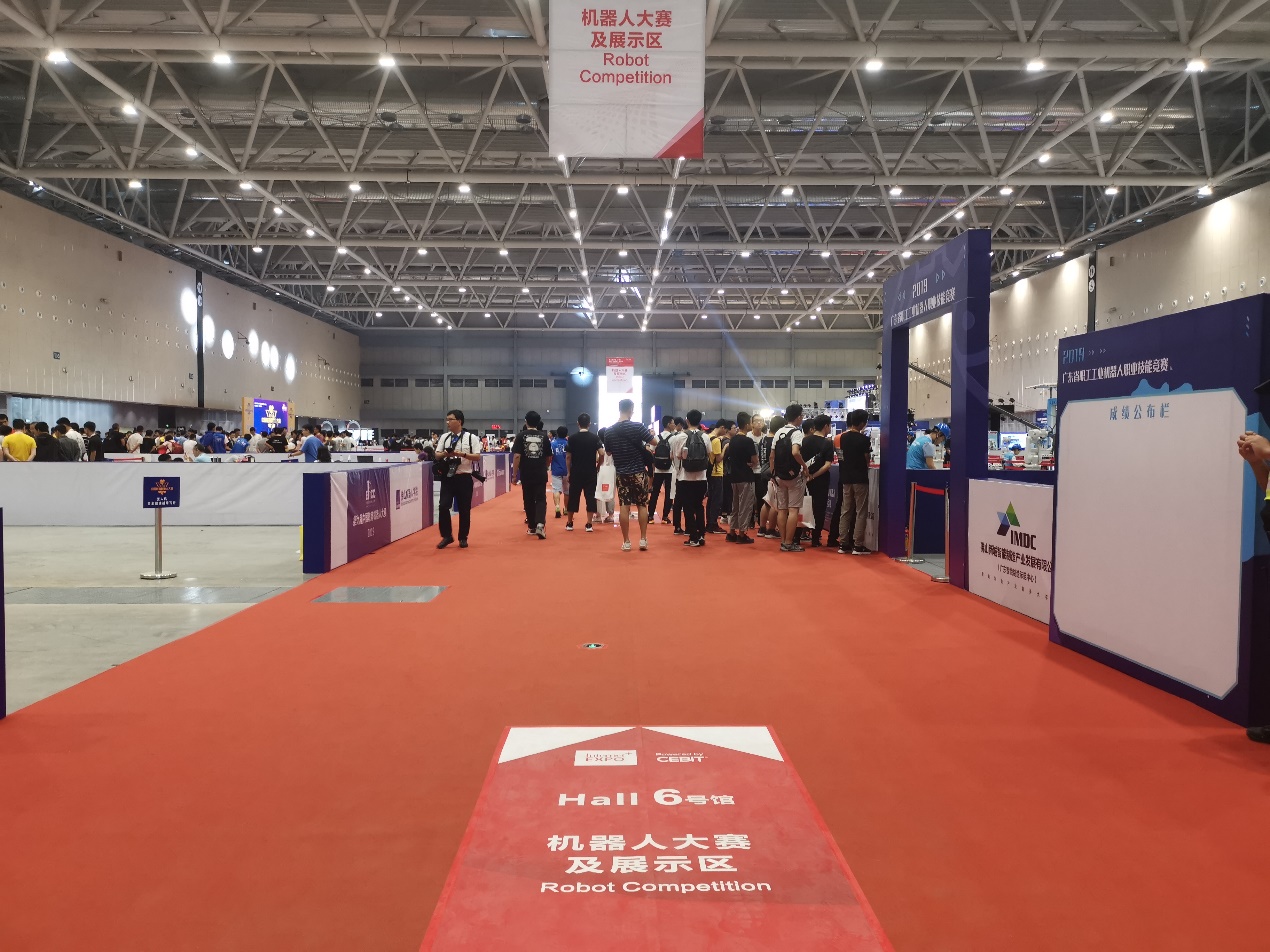 图为6号展馆,大家前去观看机器人比赛