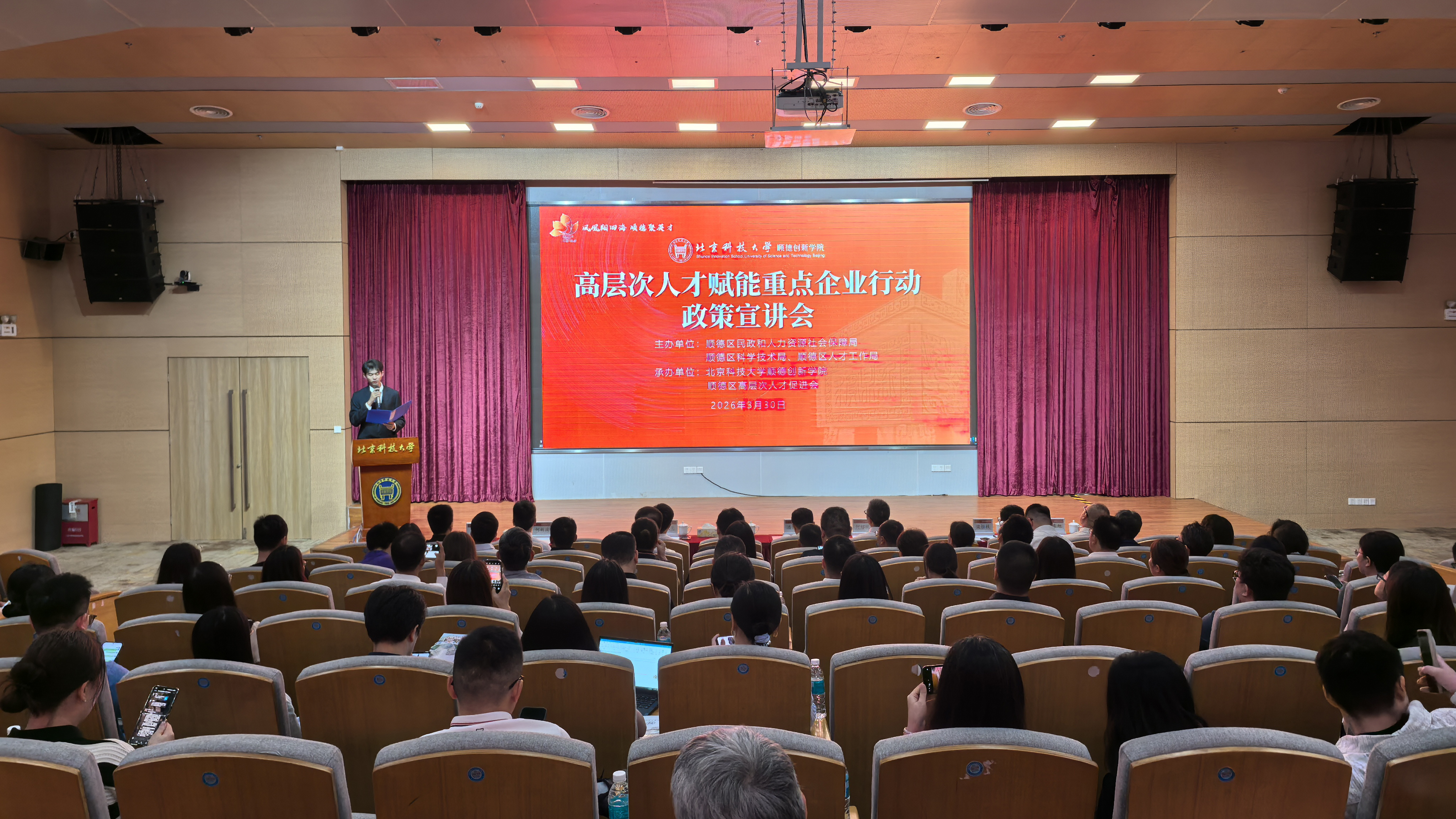 3月30日下午,ku真人 “高层次人才赋能重点企业行动”政策宣讲会在学院学术报告厅顺利举办。本次活动旨在深入贯彻落实省委“百万英才汇南粤”战略部署,搭建政府、高校、企业三方对接桥梁,以高层次人才资源精准赋能顺德制造业当家,助力企业精准引才用才,提升自主创新能力,服务区域经济社会高质量发展。本次活动由顺德区民政和人力资源社会保障局、区科学技术局、区人才工作局主办,ku真人 、区高层次人才促进会承办。活动吸引来自顺德区各镇街相关部门及60余家重点企业代表共100余人出席活动。