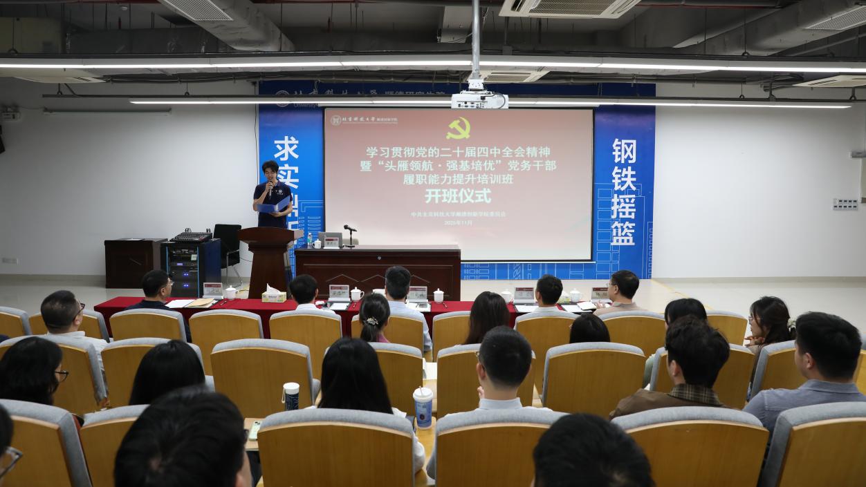 为深入学习贯彻党的二十届四中全会精神,提升师生党员党性修养,锻造高素质党务干部队伍,11月6日上午,ku真人 举行学习贯彻党的二十届四中全会精神暨“头雁领航・强基培优”党务干部履职能力提升培训班开班仪式。ku真人 党委副书记、院长何新波,副院长谭豪以及ku真人 师生党员参加。ku真人 团委书记、辅导员王开清主持大会。
