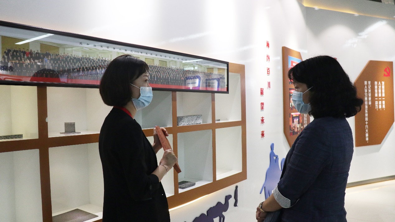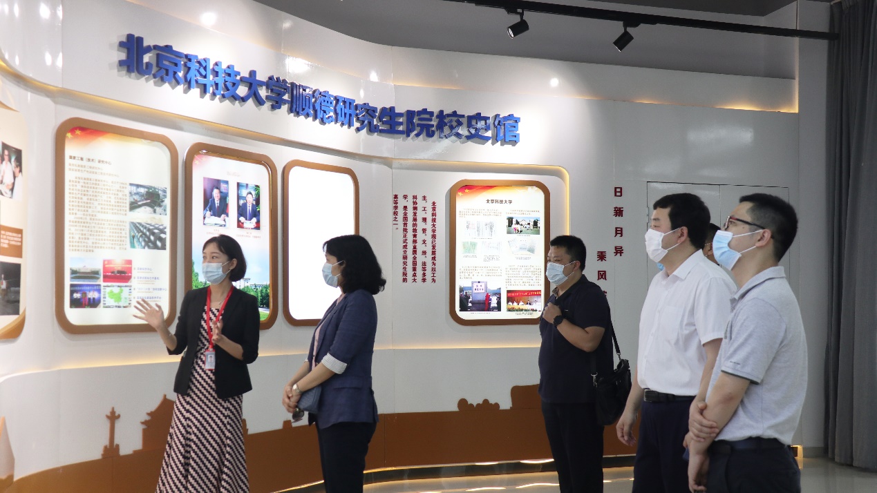 科技局一行首先参观了ku真人 顺德研究生院校史馆。参观过程中,周佩珊局长详细了解了ku真人 的发展历程、顺德研究生院的科研团队及科技创新成果,并对北科大教师在前沿学科领域取得的创新成果给予了充分肯定。