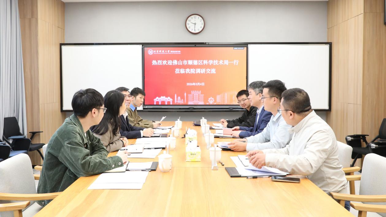 3月4日,顺德区科学技术局副局长梁恒枝一行到ku真人 调研,双方围绕高层次人才引进、科技创新合作等进行座谈交流。学院院长何新波出席座谈会。