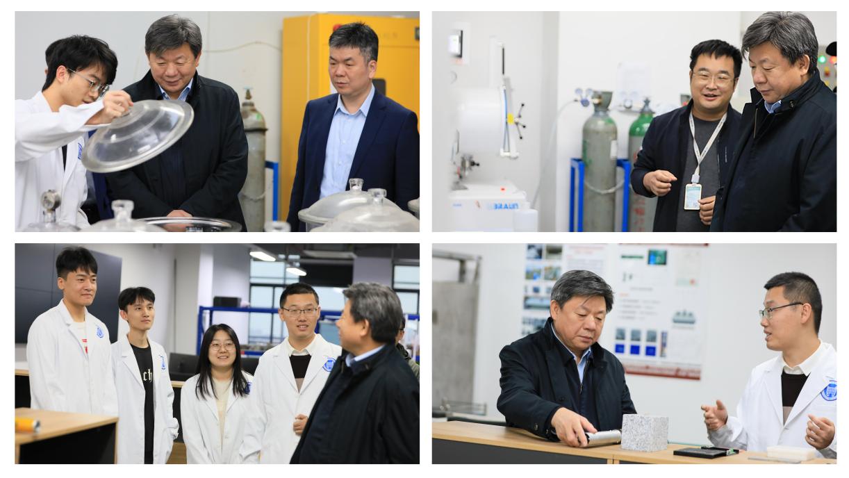 调研期间,杨仁树校长一行实地走访了ku真人 绿色材料技术创新中心、佛山市地下空间开发与利用工程技术研究中心、佛山市碳电子信息材料工程技术研究中心等实验室,深入了解师生科研工作开展以及实验室仪器设备使用情况,并与实验室师生亲切交谈,细致了解在院学习、科研、生活的情况。